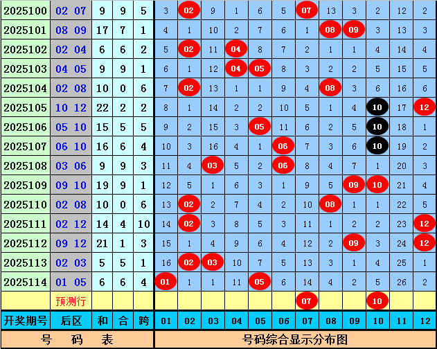后分袂析:上期后区开出1路+2路奖号:01和05,最近20期后区奖号012路比为14:13:13,各路号码走势基本终点,现在012路号码分别遗漏1期、0期、0期,本期后区肃穆号码01、03、07、08、10,两码参考07、10。